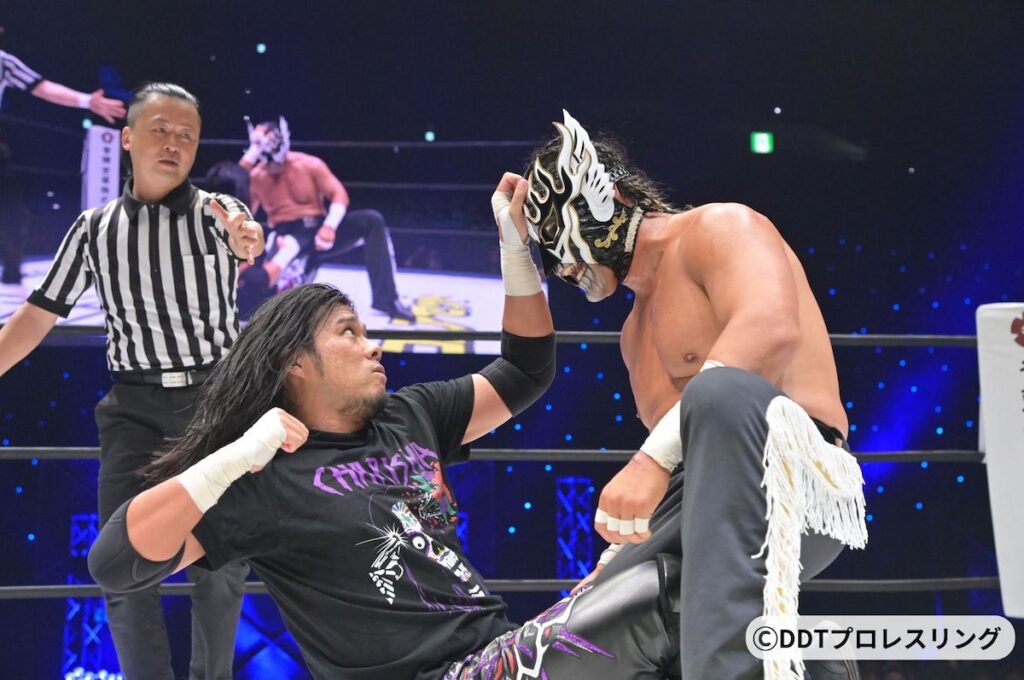 プロレス 【DDT】10.2後楽園、カリスマ・佐々木大輔「20年の絆と狂宴」へ!激白「石川はデスペラードに任せる」 2025年9月30日 “戦友”デスペラードと“大巨人”石川修司に挑む 2023年7月23日、DDTプロレスリングの両国国技館大会『WRESTLE PETER PAN 2023』が開催。エル・デスペラードとシングルマッチで対戦した。 〇エル・デスペラード(20分32秒 ヌメロ・ドス)佐々木大輔 ⚫️ Tags: DDTプロレス DDTプロレスリング アントニーオ本多 エル・デスペラード 佐々木大輔 岡谷英樹 新日本プロレス 石川修司 葛西純 Post navigation Previous: 大阪・関西万博「Sports Future Lab」に『NTTSportict(NTTスポルティクト)』出展。スポーツの感動を発信!Next: 伝統と未来を繋ぐ!『もち吉』が相撲「決まり手八十二手」煎餅を新発売。記念イベントに若隆景も! ページ: 1 2 3 4 5 関連記事 プロレス 【DDT】「棚橋弘至戦を終えて」男色ディーノが語るレスラーとしての現在地――諦めた夢を叶えた男の次なる野望 2025年11月17日 プロレス 【全日本】斉藤ジュンが語る「世界最強タッグ」辞退の真意と三冠への想い 2025年11月12日 プロレス 【DDT】佐藤大地「ベルトは遠い存在」KO-Dタッグ初挑戦で見えた現実。だが目標は揺るがない 2025年11月9日 プロレス 【DDT】正田壮史が語る「D GENERATIONS世代」の使命と未来への覚悟 2025年11月8日 トレンド 【香川オリーブガイナーズ】小学校でプロ直伝の野球教室を開催 。3~4年生対象にスポーツ継続へ専門指導 1 【香川オリーブガイナーズ】小学校でプロ直伝の野球教室を開催 。3~4年生対象にスポーツ継続へ専門指導 2025年11月21日 【新日本WTL】EVILが裏切りのウィスキーミスト噴射!高橋裕二郎ギブアップ負け 2 【新日本WTL】EVILが裏切りのウィスキーミスト噴射!高橋裕二郎ギブアップ負け 2025年11月21日 【新日本WTL】タイチ&小島、強豪・毘沙門に逆転勝利!Aブロック波乱の幕開け 3 【新日本WTL】タイチ&小島、強豪・毘沙門に逆転勝利!Aブロック波乱の幕開け 2025年11月21日 【新日本WTL】石川&デスペラード、矢野に足元すくわれ 痛恨の黒星発進! 4 【新日本WTL】石川&デスペラード、矢野に足元すくわれ 痛恨の黒星発進! 2025年11月20日