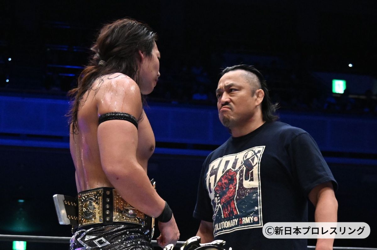 試合後、マイクを握った竹下は「俺がベルトを獲って文句のある奴は俺の前に来い!」とアピール。すると、この日復帰したばかりの後藤洋央紀がリングイン。「KONOSUKE TAKESHITAにひとつ聞きたい。俺が来ると思ったか?俺の挑戦を受けるのか、受けないのか。どっちだ」と、新王者への挑戦を表明。