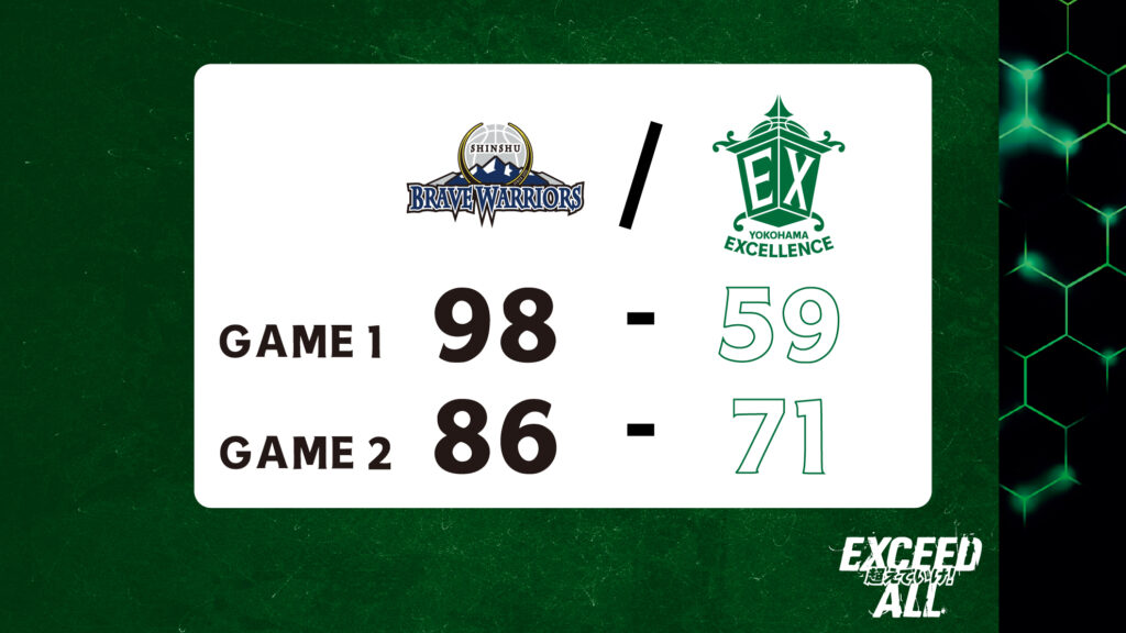 B2横浜エクセレンスは、8日間で5試合という超過密日程を終えた。ロスター不足の苦しい台所事情の中、連戦最後のカードはBプレミア参入決定の強豪・信州ブレイブウォリアーズとのアウェー戦。善戦するも連敗を喫し、このタフな連戦を1勝4敗で終えた。