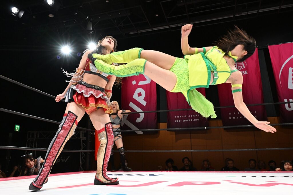 東京女子プロレスが10月26日、東京・両国KFCホールで「TJPW Autumn Victory in RYOGOKU」を開催した。11・9後楽園ホールでプリンセスタッグ王座(王者組=上福ゆき&上原わかな《Over Eats》)に挑むHIMAWARI、鈴木志乃が前哨戦で王者組から勝利を挙げ、タイトル戦に向け好発進した。