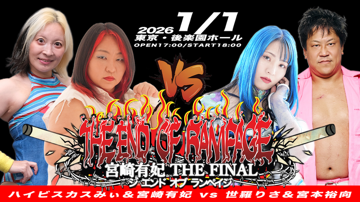来年1月1日(木・祝)、プロレスリングWAVE後楽園ホール大会『THE END OF RAMPAGE』をもって現役生活にピリオドを打つ宮崎有妃(プロレスリングWAVE)の引退試合の一部が決定した。