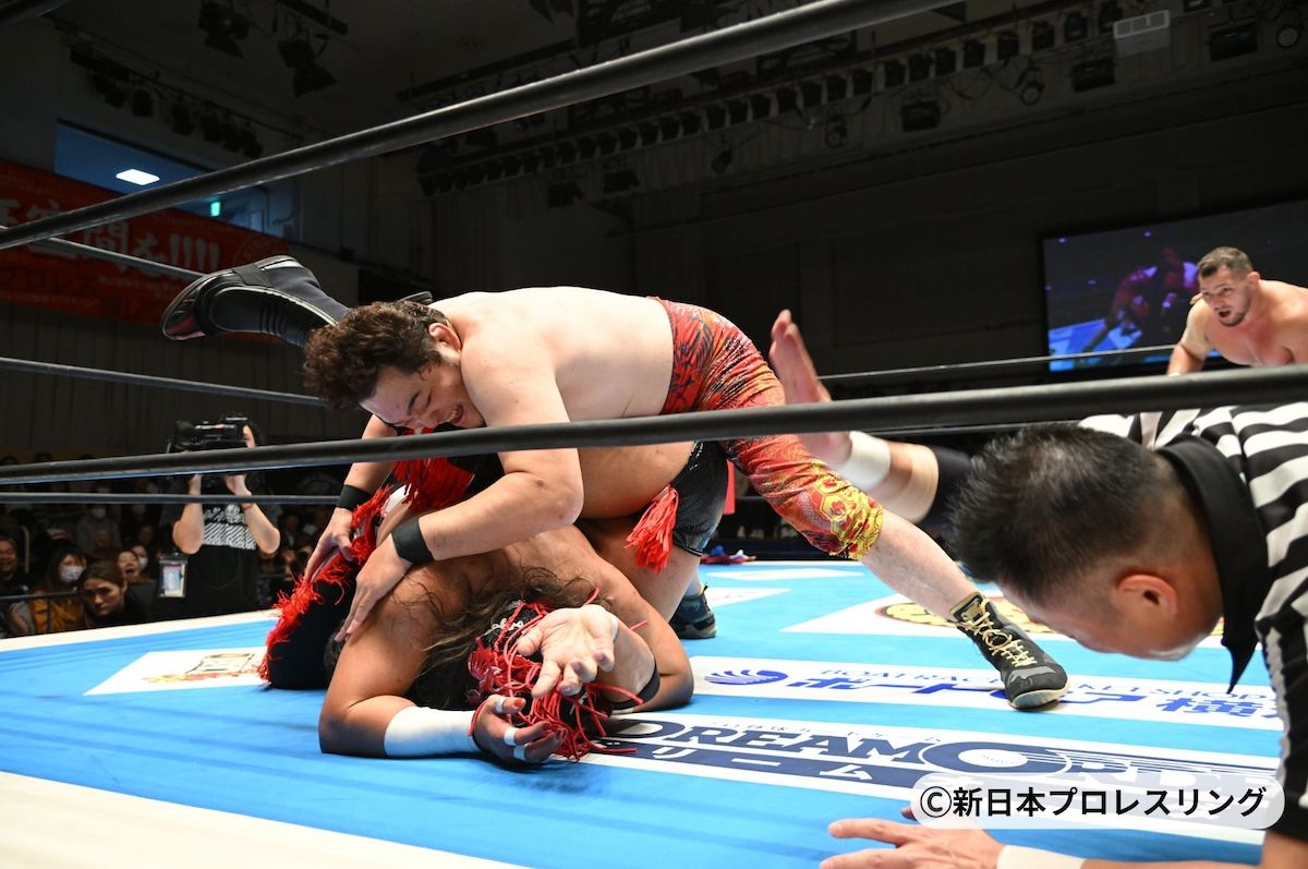 ボルチンがデスペラードを石川目掛けて投げつけると、デスペラードを受け止めた石川を、矢野通が電光石火の丸め込み! 見事に3カウントを奪い、矢野&ボルチン組が2点を獲得。異色タッグの初陣を、狡猾なタッグチームが老獪な勝利で飾った。