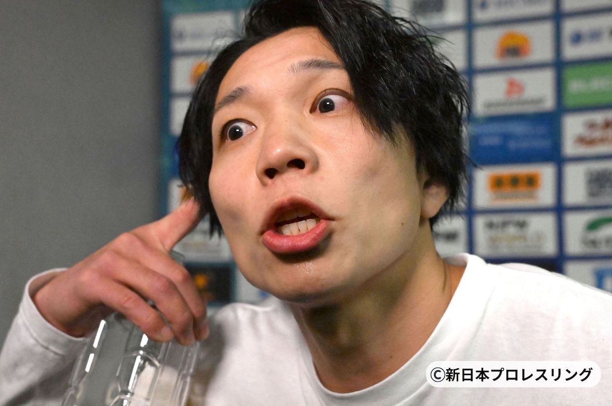 EVIL「オイ、コラ、ボケ!クソが!オイ、YOH、テメエ関係ないやろ、コラッ!オラ、俺の大事な公式戦を、オラ!オラあの野郎、ベルトまで見せつけてくれたな、この野郎!ふざけやがって、ボケが!オイ、あいつの思惑通りにさせるか、この野郎、ああ……。なにがNEVERシックスメン東京ドームだ?テメエなんてな、顔じゃねえんだよ。やらすわけねえだろ、ボケが、コラ!」