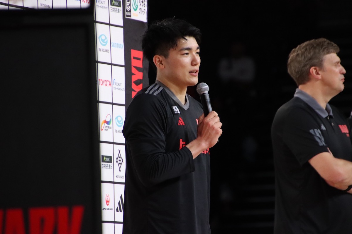 TOYOTA ARENA TOKYOで行われる初めての公式戦となった開幕戦、劣勢を強いられた展開でも「がむしゃらにやり続けるしかなかった」と戦う姿勢を見せ続け、3Pシュートを積極的に狙い16得点を挙げていた。