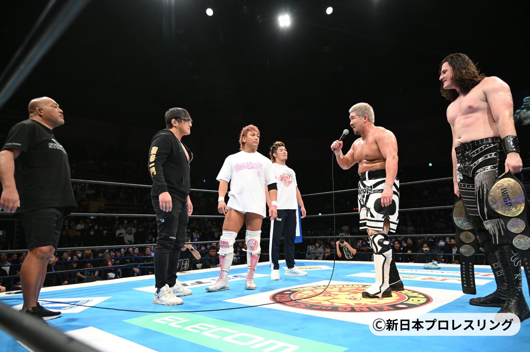 次期挑戦者候補が退場すると、Iceは改めてマイクを握り「棚橋弘至が引退して、まださみしい気持ちがあんのもわかっとる」とファンの心情に触れながらも、「前にも言ったがよ、俺は太陽にはなれねぇんだ。あの人みたいにファンのみんなに愛を叫ぶ、スゲェことなんてできねぇし、あの人みたいに真っすぐな笑顔でお前らを幸せにする強さもねぇ。まあ、ヒーローみたいによ、カッコよくねぇし、カッコいいことも言えねぇけどよ。もしよ、俺みてぇに太陽や月、対戦相手の光でしか輝けねぇなれの果てみてぇヤツら、喜怒哀楽、ナマの感情、すべてさらけ出してぇヤツら、“プロレスハイ”になりてぇヤツらはよ、勝手に俺の背中追って来い!」と会場のファンに呼びかけた。
