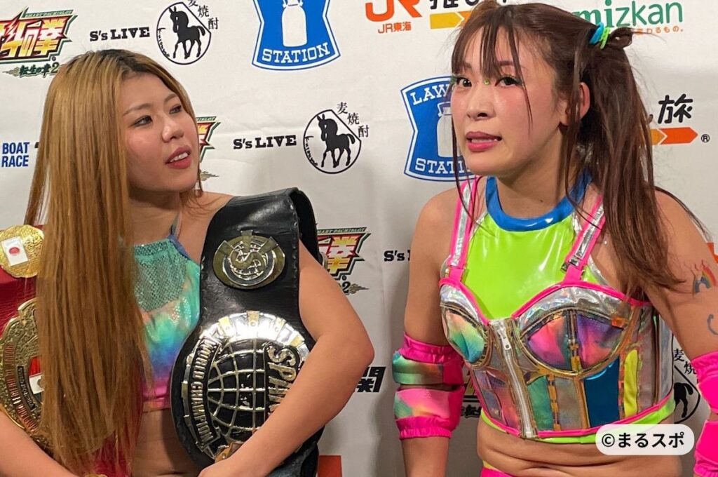 バックステージで葉月は「(フワちゃんと)初めての勝利を後楽園であげられたことは嬉しい。でも、一つ悔しいのは、フワちゃんじゃなくてウチが取っちゃったこと。次はフワちゃんがきっちり自分の手で勝利をもぎ取ってほしい」と課題を口にした。