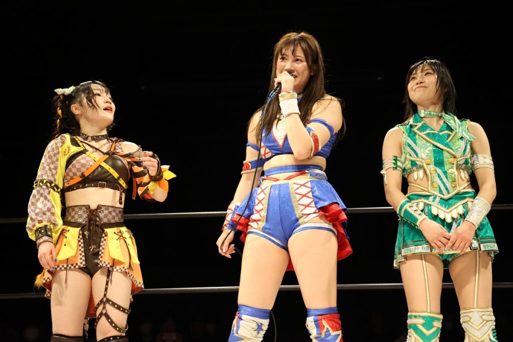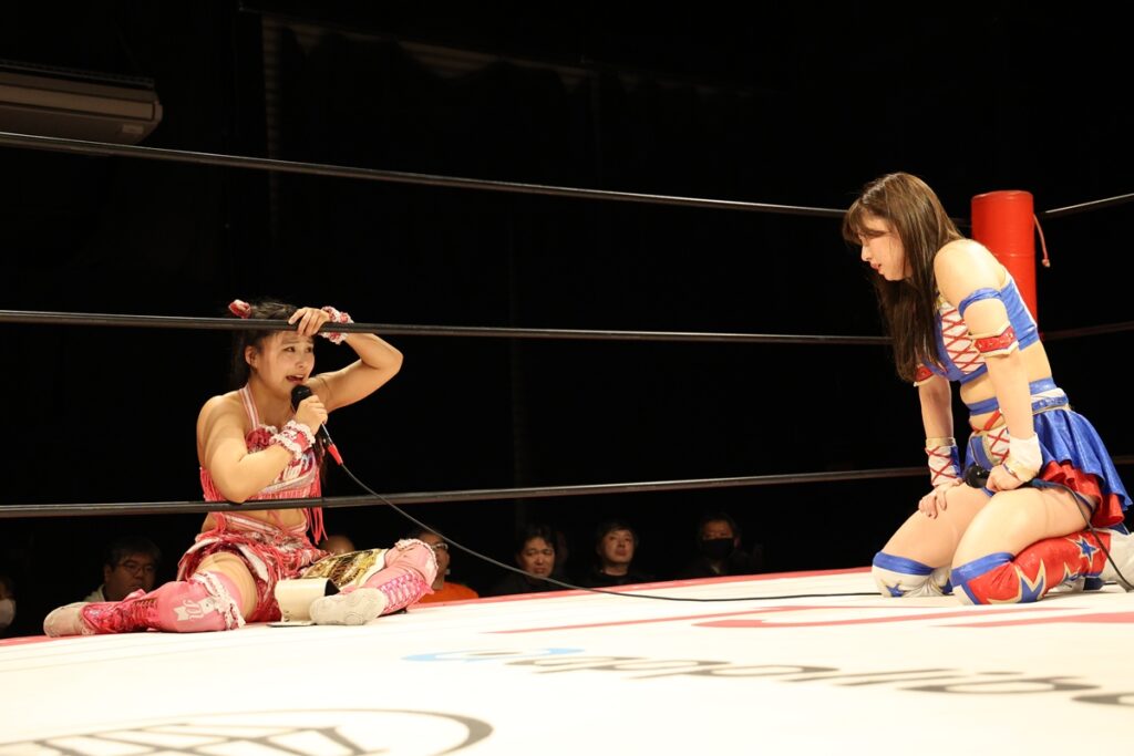 バックステージで荒井は「初めて未詩さんから勝つことができました。挑戦者に決まってから、自分がチャンピオンになる、勝つって、ずっと思ってここまでやってきたけど。勝ったことがなかったから、自分を信じ切ることもできなくて。これで合ってるのかって思ってたので。今日勝つことができて。できるって、やれるって思うことができました。残り1ヵ月ないですけど、今日の自分は間違ってなかった。自信をもって、この先も突き進んでいきたい。今日勝ったのはまぐれだったじゃんって思われないように。もっともっと今日と違う自分で両国に出られるように頑張って。また勝ってベルト獲って、チャンピオンになって、東京女子を引っ張っていけるように頑張ります」と決意をみなぎらせた。