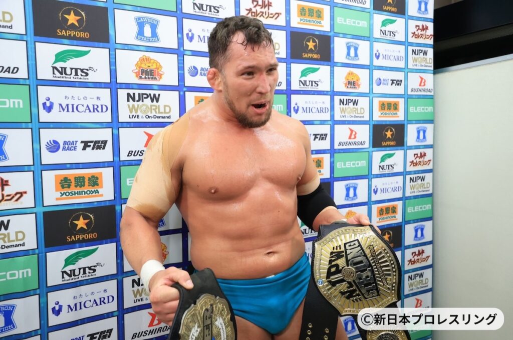 いやあ、でも、ここまできて、やっぱり次もホントに、ケガあっても何でもあっても、最後まで頑張っていきます。やっぱり、鷹木と上村、どっちもやりたいけど、そのあとザックも上がってくれたら、最強すぎるわ。有名すぎるわ。この2人に勝って、ザックに勝てれば、一斉にみんなにリベンジ(できるよう)目指していきます。まだ頑張ります。アウガ! はい! うれしい」