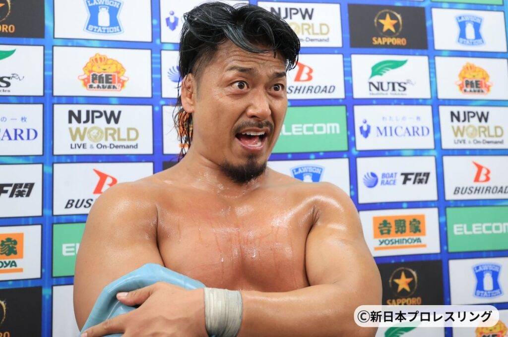 いやホントに、素直に強かったよ。さっきアイツがリング上で言ったように、もっとすげえシチュエーションでやろうぜ。負けて言うのも何だが、上村、何回もやられて一回返したぐらいじゃ収まらないだろう。俺も収まんねえよ。山梨で、新日本に来て初めての日曜日の開催で、完全にスリーカウント取られたんだ。どうすんだ、次の集客につながるぞ、この野郎!