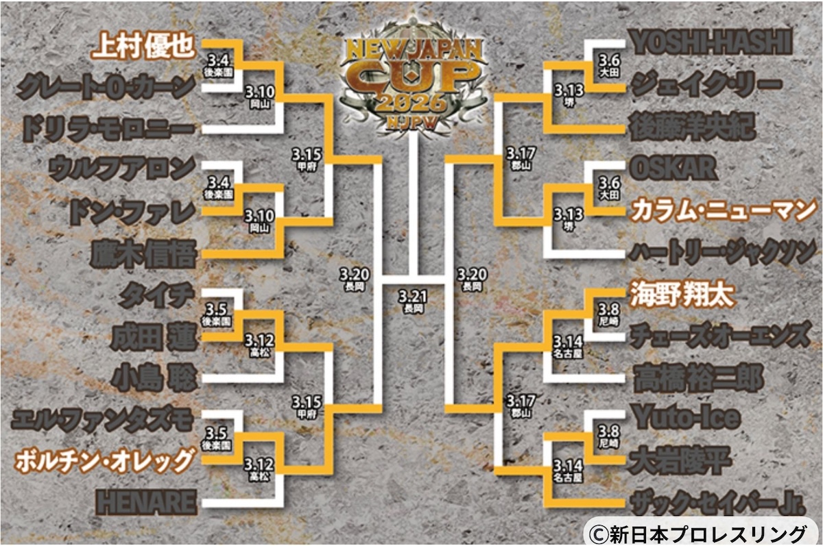 プロレス 【新日本】ウルフアロン、因縁のH.O.Tに怒りの猛攻! 成田蓮に沈むも「NEVER」の火種は消えず 2026年3月18日 NEVER無差別戦のリベンジを狙うウルフアロンは成田蓮に串刺しラリアット NEW JAPAN CUP 2026トーナメント表(3月17日 福島大会終了時点) ベスト4が出揃ったNJC、残すは20.21日の長岡大会のみ 上村優也、鷹木信悟の壁突破し準決勝へ「絶対トップ行けよな!」魂のエールに涙 Tags: ウルフアロン ディック東郷 ドン・ファレ 成田蓮 新日本プロレス 松本達哉 矢野通 Post navigation Previous: 名門・延岡学園野球部で「裸動画」拡散の激震!女子生徒を脅し撮影、部内で共有…夏の準V校で一体何が!? ページ: 1 2 3 関連記事 プロレス 【DDT】王者・上野勇希がKANONを直接沈め不敵な宣戦布告!「心までさらけ出せ」と厳しく迫る 2026年3月16日 プロレス 【新日本 NJC】ボルチン・オレッグが成田蓮を撃破し準決勝進出!凱旋の地・山梨でH.O.Tの暴挙を粉砕 2026年3月16日 プロレス 【新日本NJC】上村優也、鷹木信悟の壁突破し準決勝へ「絶対トップ行けよな!」魂のエールに涙 2026年3月16日 プロレス 【東京女子】山下実優&遠藤有栖、Sareee&彩羽匠組に必勝宣言!「この2人で勝つことは譲れない」 2026年3月15日 トレンド 【新日本】ウルフアロン、因縁のH.O.Tに怒りの猛攻! 成田蓮に沈むも「NEVER」の火種は消えず 1 【新日本】ウルフアロン、因縁のH.O.Tに怒りの猛攻! 成田蓮に沈むも「NEVER」の火種は消えず 2026年3月18日 名門・延岡学園野球部で「裸動画」拡散の激震!女子生徒を脅し撮影、部内で共有…夏の準V校で一体何が!? 2 名門・延岡学園野球部で「裸動画」拡散の激震!女子生徒を脅し撮影、部内で共有…夏の準V校で一体何が!? 2026年3月18日 ベネズエラが初の決勝進出!イタリア撃破で爆音ノリノリで帰路 3 ベネズエラが初の決勝進出!イタリア撃破で爆音ノリノリで帰路 2026年3月17日 国民性の違い?沈黙の侍ジャパンに、爆音で去るドミニカ代表の対照的な帰国風景 4 国民性の違い?沈黙の侍ジャパンに、爆音で去るドミニカ代表の対照的な帰国風景 2026年3月17日