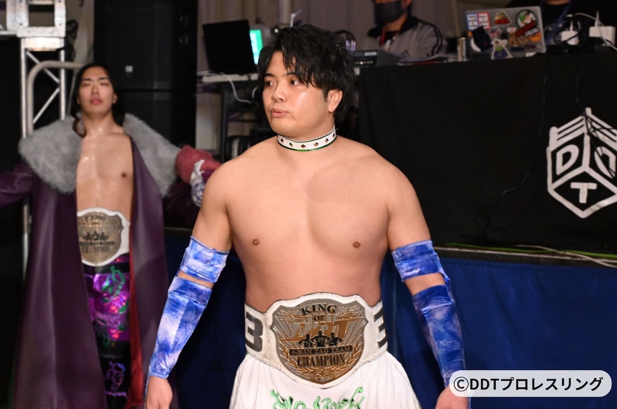 高鹿:去年の4月、KO-D無差別級王座に挑戦して獲れなかったですし、今年のDGCも獲れなかった。須見がDDT UNIVERSAL王座を獲って実績を残した一方で、僕は6人タッグのベルトは持っていますけど、正直……出遅れているというか、「先を行かれちゃった感」は否めないですね。