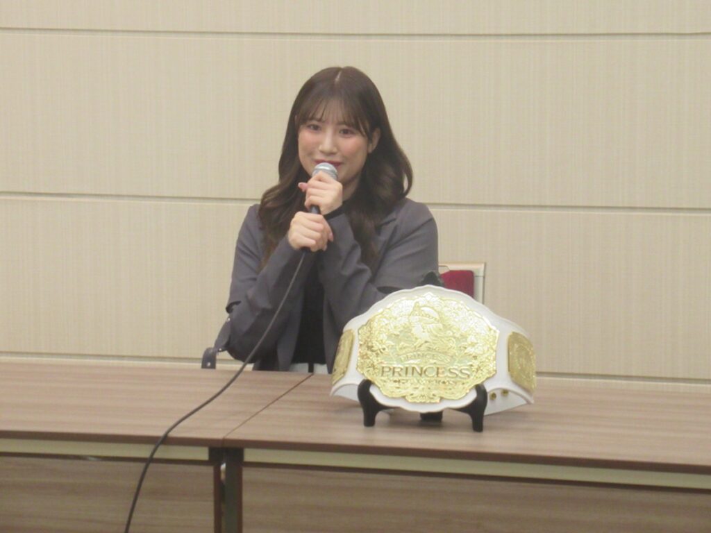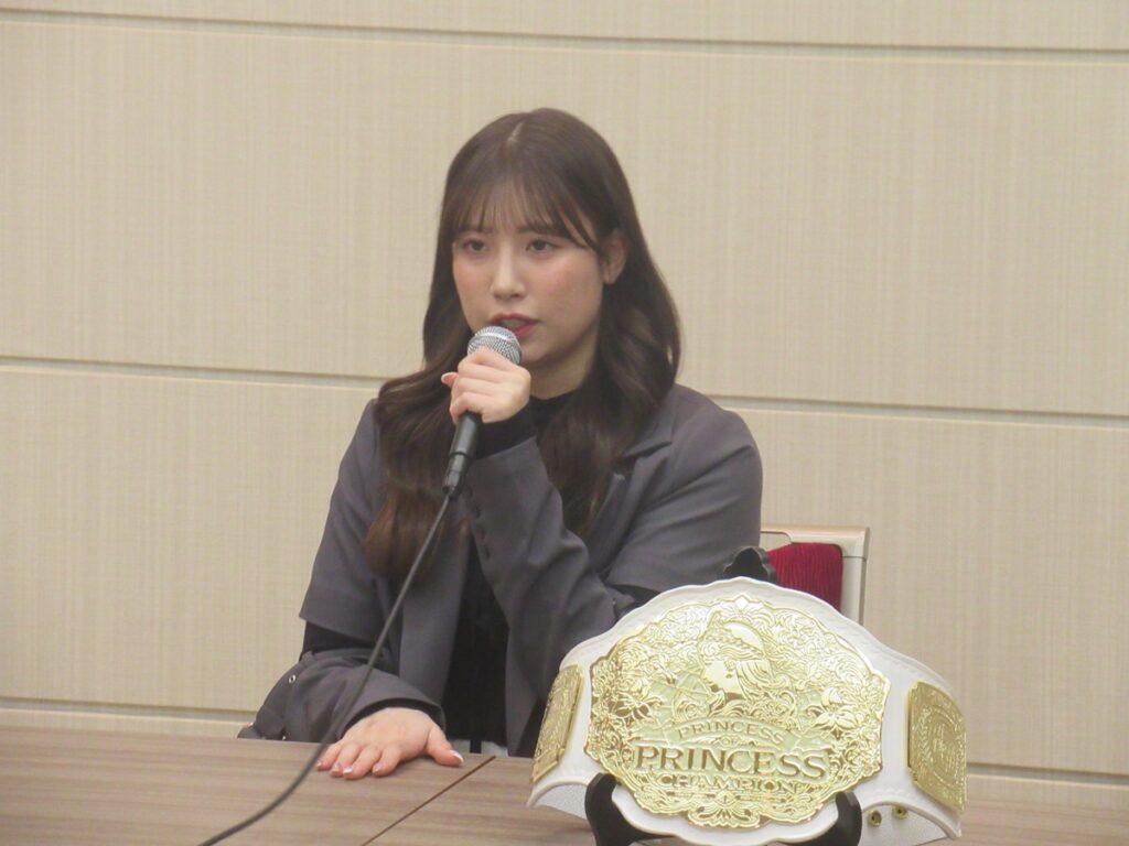 東京女子プロレスが3月30日、都内で記者会見を開催した。前日に両国国技館で渡辺未詩を撃破し、プリンセス・オブ・プリンセス王座初戴冠を果たした荒井優希が一夜明けた思いを吐露した。