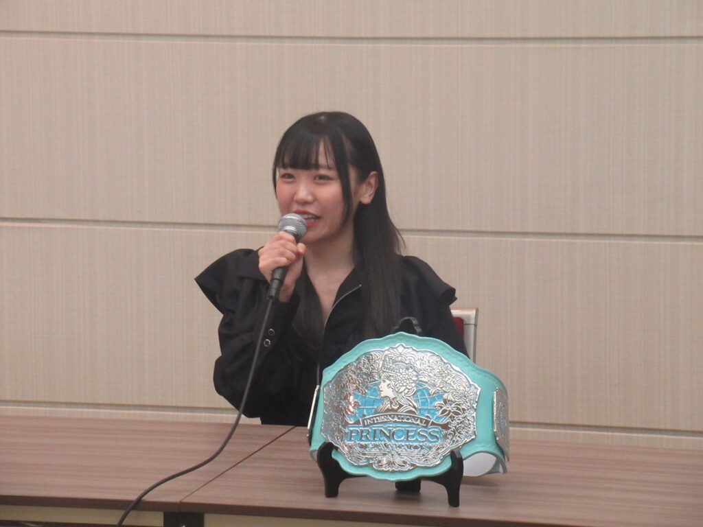 所用で欠席のハットリからは「ドーモ。拙者の名はハットリ桜。まずは鈴芽=サン、インターナショナル・プリンセス王座戴冠、おめでとう。だが――ここからが本番でござる。次なる標的はおぬし。そなたの持つインターナショナル・プリンセス王座、拙者が奪う。それがオキテ。一瞬で決める…見逃さない。覚悟しておくがいい。そのベルトはラスベガスで手に入れる。そしてワールドワイドに名を刻むのも――この拙者でござる。いいね?」とのメッセージが巻物で届いた。