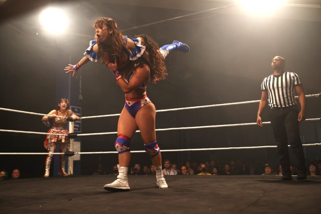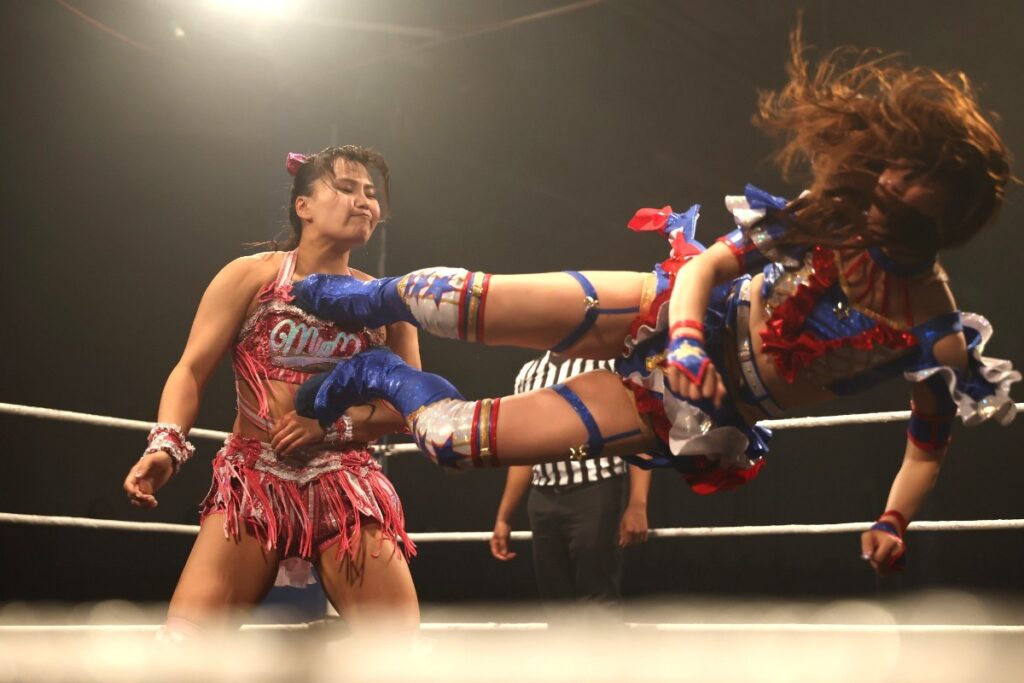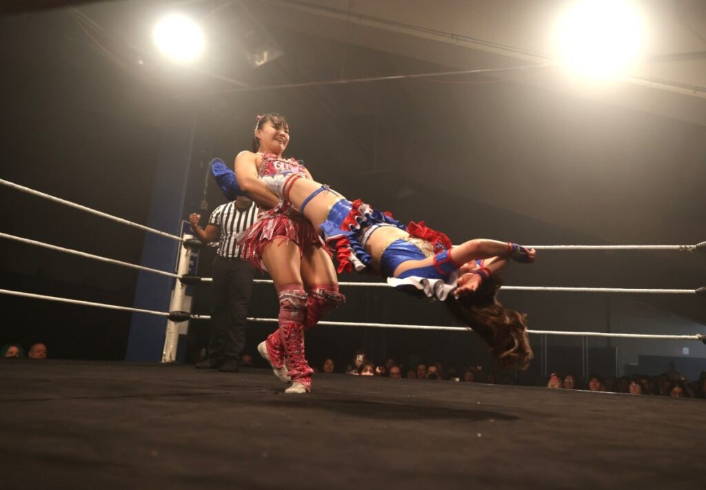 12日(日本時間13日)、同会場での「DAY2」では荒井&鈴芽がJ-ROD&ハットリ桜と対戦。これは4・16ラスベガス大会でのプリプリ王座戦、インターナショナル・プリンセス王座戦(王者=鈴芽vs挑戦者=ハットリ)のダブル前哨戦となる。