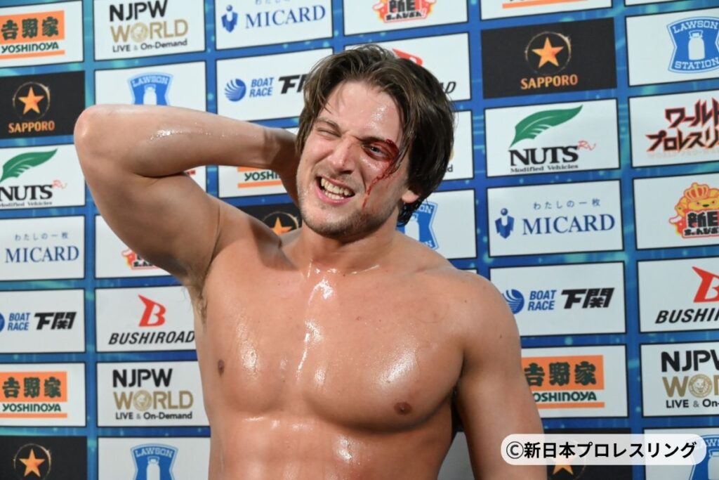 ジェイ「今日の負けは何の意味も持たない。額に傷を負わされたことも、何の意味も持たない。ああ……新日本では対戦相手は強いものだ。みんなが一様に強いんだ。でも、明日……明日の対戦は大きな意味を持つ。シンゴ・タカギはIWGPヘビー級王座戦でカラムと対戦する。明日は俺がアイツをちょっと痛めつけるチャンスだ。