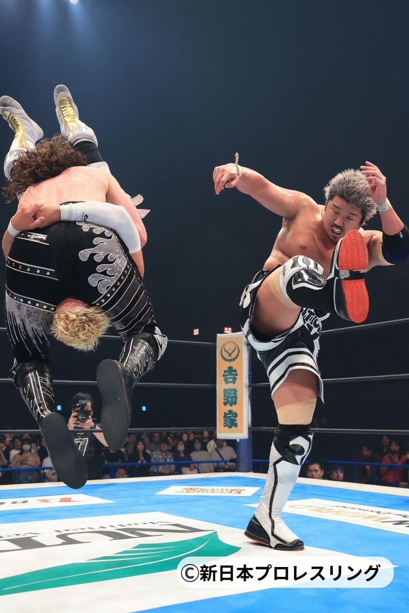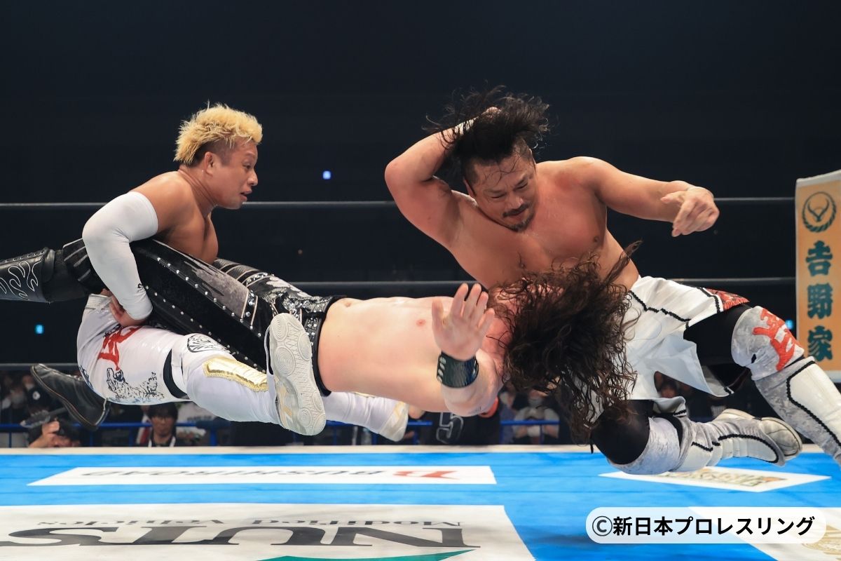 25日、新日本プロレス・広島大会のメインイベントでIWGPタッグ選手権試合が行われ、王者・Yuto-Ice&OSKAR(K.O.B)が、挑戦者・後藤洋央紀&YOSHI-HASHI(毘沙門)を下し、6度目の防衛に成功した。